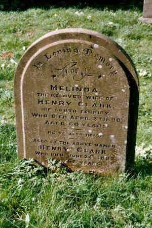 • Census: UK 1881 National, 3 Apr 1881, South Ferriby, Lincolnshire, England, United Kingdom. • Residence: Old Sluice Road, 3 Apr 1881, South Ferriby, Lincolnshire, England, United Kingdom. Melinda married Henry CLARK, son of Henry CLARK and Unknown, after 7 Apr 1861. (Henry CLARK was born about 1830 in South Ferriby, Lincolnshire, England, United Kingdom,1 2 died on 24 Jun 1892 1 and was buried in South Ferriby, Lincolnshire, England, United Kingdom 1.) |